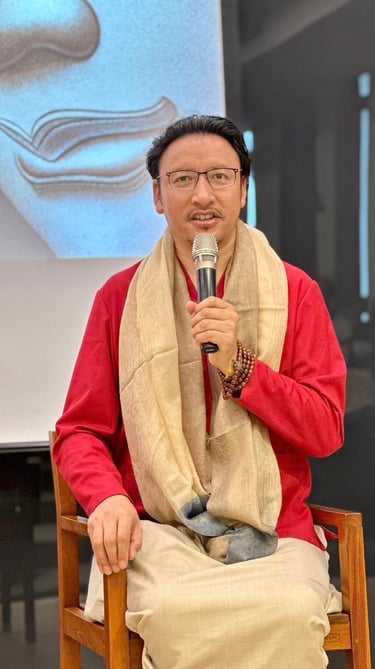 Khenpo was imprisoned in 2003 for two years after Chinese officials claimed that a book he wrote, titled “The future of Tibet” was against Chinese policy. After he was released in 2006, Khenpo left Tibet for India, and went to Dharamsala to receive an audience with His Holiness the Dalai Lama. His Holiness advised him to join Dzongsar Institute in Chauntra, under the guidance of the late Khenchen Rinpoche Kunga Wangchuk. There he studied the Sakya commentaries of Sutra and Tantra, and due to his skills in Tibetan writing and grammar, he was also a member of the editorial section of the Chokyi Lodro Institute for three years.